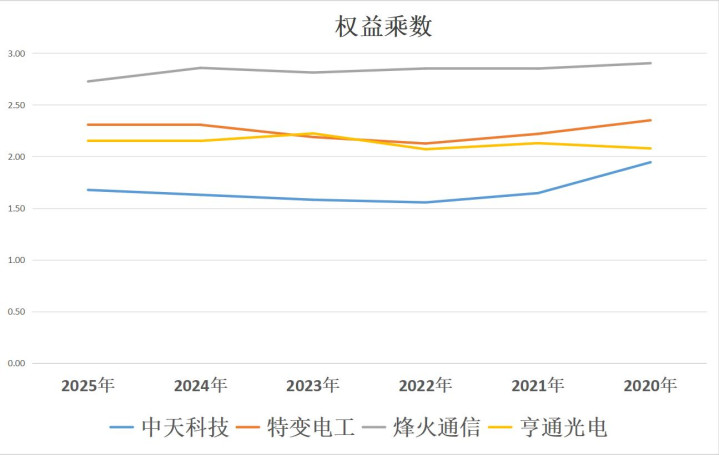 财务杠杆:烽火通信>特变电工>亨通光电>中天科技